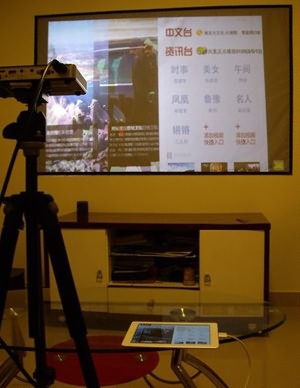 連接ipad的投影效果(開燈環(huán)境下,投影72寸)