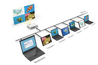 CB-X20除了能為教學(xué)提供更好的展示效果,自身具有的多PC投影功能提高教學(xué)效率,增添課堂活力,在現(xiàn)代教育信息化的環(huán)境下更為實(shí)用。只需安裝EasyMP Multi PC Projection,就能實(shí)現(xiàn)從網(wǎng)絡(luò)上最多50臺計(jì)算機(jī)、安裝Epson iProjection 的智能手機(jī)或平板電腦中選擇最多4個(gè),在大屏幕上以四分畫面的形式進(jìn)行實(shí)時(shí)同步展示。教師通過控制投影輸出,就能充分調(diào)動學(xué)生展示熱情,讓課堂充滿活力和創(chuàng)意。