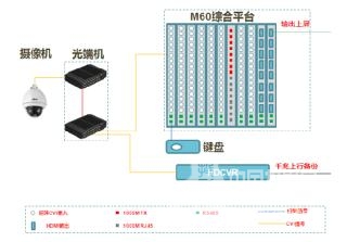 系統(tǒng)原理圖描述:前端視頻通過光端機(jī)環(huán)通或分光器分配方案,實(shí)時(shí)視頻輸入綜合平臺cvi輸入板,通過hdmi輸出,實(shí)現(xiàn)高清實(shí)時(shí)上墻,實(shí)現(xiàn)畫面拼接;另一路同源cvi信號直接輸入hdcvr,實(shí)現(xiàn)高清存儲。(注:此系統(tǒng)可實(shí)現(xiàn)cvi視頻高清、實(shí)時(shí),無損上墻。)