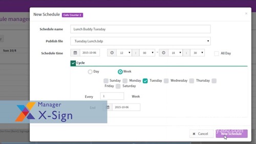 x-sign播放端提供多個系統(tǒng)平臺版本,可通過連接明基云服務器或線下usb接收內(nèi)容并播放。當門店數(shù)量少或網(wǎng)絡(luò)不穩(wěn)定時,可選擇單機版的u盤直讀,將u盤插入數(shù)字標牌設(shè)備即可自動讀取;而網(wǎng)絡(luò)版適宜連鎖經(jīng)營模式,通過軟件管理端進行內(nèi)容排程與分發(fā),再到云服務器統(tǒng)一遠程播放,避免了人為犯錯。