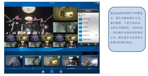 分布式圖像處理系統(tǒng)可對(duì)多設(shè)備采集到的視頻信息進(jìn)行統(tǒng)一管控;并具備信號(hào)開(kāi)窗、拼接、漫游等屏幕操作功能。同時(shí),通過(guò)操作客戶端軟件,還可以在iPad、觸屏電腦上對(duì)屏幕進(jìn)行可視化操作,易于操作和維護(hù)?稍谌我獾攸c(diǎn)實(shí)時(shí)呈現(xiàn),任意信號(hào)源的采集,可將分布于任何地點(diǎn)的各種信號(hào)整合,匯聚各種系統(tǒng)的音視頻多媒體信號(hào)和人機(jī)輸入輸出界面,打造綜合實(shí)時(shí)信息統(tǒng)一的指揮決策平臺(tái)。
