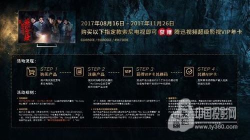 從今天起至11月26日購(gòu)買(mǎi)任意一款新品的消費(fèi)者,均可獲贈(zèng)12個(gè)月“騰訊視頻超級(jí)影視vip卡(兌換碼)”一份,消費(fèi)者不僅可以在索尼電視大屏?xí)诚眚v訊視頻的海量付費(fèi)內(nèi)容,還可在pc/手機(jī)/pad等其它終端通用。