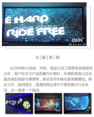 從DHN助力家庭、學(xué)校、商業(yè)以及工程等各領(lǐng)域現(xiàn)場分析,客戶在關(guān)注產(chǎn)品質(zhì)量與價格時,環(huán)境的美觀以及設(shè)備連接的簡易與便捷等,保證信號失幀也是很重要的。除此之外,直到現(xiàn)在,高清線纜長度對于展覽展示行業(yè)來說,也一直是一個挑戰(zhàn)。