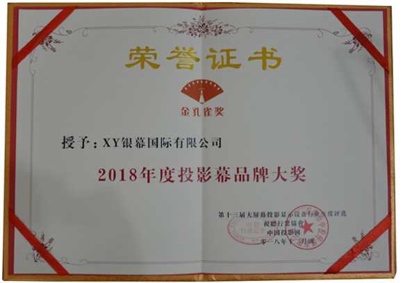 xy銀幕榮獲 “金孔雀獎(jiǎng)”-“2018年度投影幕品牌大獎(jiǎng)”,充分肯定xy銀幕在投影幕行業(yè)地位,xy銀幕并以開拓創(chuàng)新的努力、不忘初心的精神,不斷創(chuàng)造更多的輝煌與奇跡。