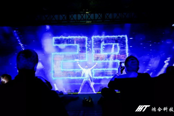 11月15日,鴻合科技年會上,鴻合工程顯示團隊通過工程投影機將藝術(shù)與高科技的完美結(jié)合,用沉浸式的紗幕全息投影再現(xiàn)公司廿九載輝煌,為現(xiàn)場觀眾打造了身臨其境的沉浸式體驗。