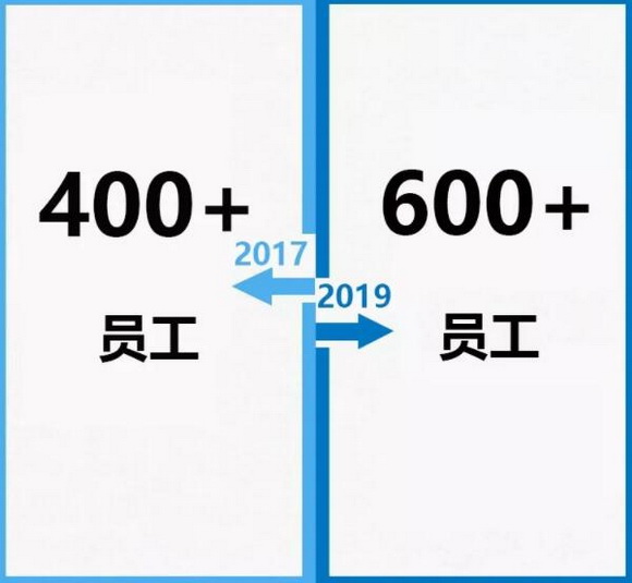 2019年,奧威亞全體員工數(shù)量已達(dá)到620+