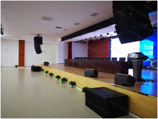 項目廳主擴揚聲器采用全頻遠程線性陣列音箱+線性陣列低音音箱,在舞臺左右上方各6只一串組合吊裝,具有高清晰度、高聲壓級、投射遠的特點。并根據(jù)廳內(nèi)擴聲輻射角度,精確調(diào)整,以達到聲像定位準確,場地聲音覆蓋均勻。