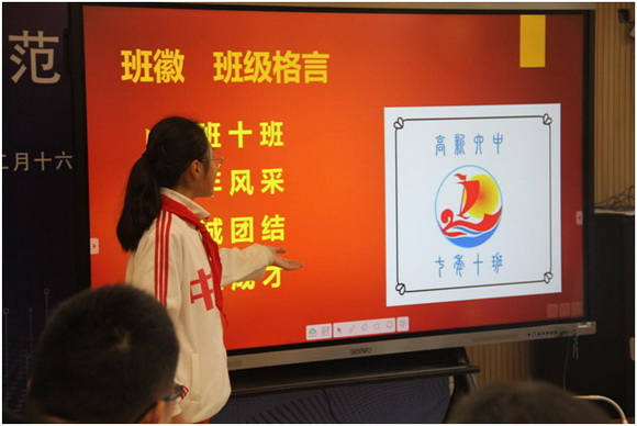 此次比賽由七年級十個班參與,以學(xué)生、老師、家長三方共同協(xié)助的形式,自主設(shè)計班級風(fēng)采展示內(nèi)容。包括班徽設(shè)計、班級格言、教師風(fēng)采、班級考勤、班級成員風(fēng)采及班級榮譽等多維度展示,激發(fā)了同學(xué)們的積極性和創(chuàng)新性。經(jīng)過一個多月的精心準(zhǔn)備,由學(xué)校、家委會、希沃三方代表組成評審小組,深入各班級實地查看班牌使用情況,并依據(jù)評分標(biāo)準(zhǔn)現(xiàn)場打分,F(xiàn)場展示環(huán)節(jié),各班級代表詳細(xì)闡述了作品的設(shè)計理念、創(chuàng)新性等亮點。經(jīng)過激烈角逐,最終七(九)班、七(十)班獲得活動一等獎,參會領(lǐng)導(dǎo)依次為獲獎班級頒發(fā)證書。