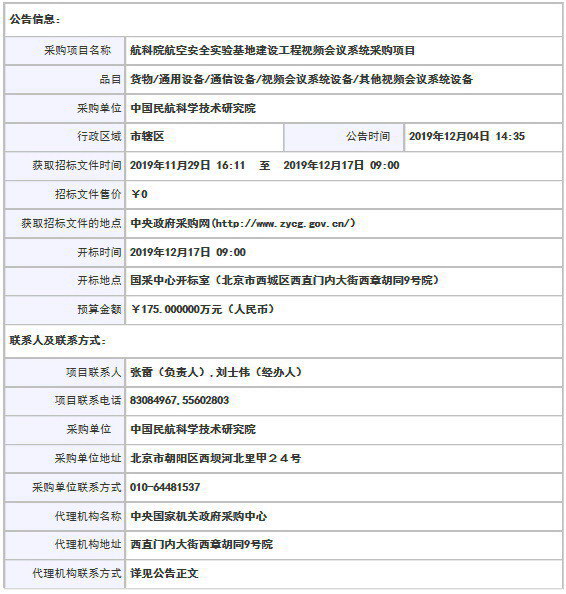 采購項目名稱: 航科院航空安全實驗基地建設(shè)工程視頻會議系統(tǒng)采購項目