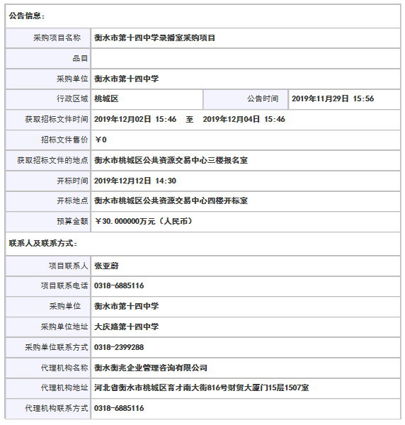 獲取招標(biāo)文件時(shí)間: 2019年12月03日 17:25 至 2019年12月18日 17:25