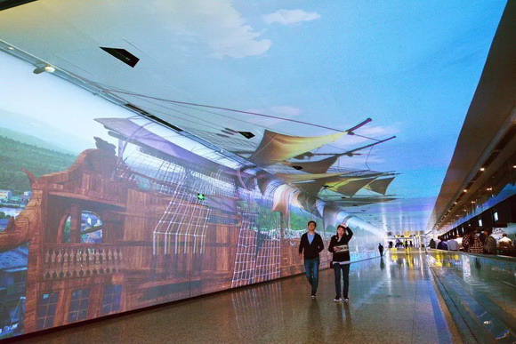 經(jīng)常乘坐飛機(jī)出行的朋友,特別是飛廣州的朋友一定知道白云機(jī)場“絲路穿越”之“時空隧道”。隧道全長約200米,面積超過了2500平方米,借助新科技打造的“動靜結(jié)合、人景結(jié)合、虛實(shí)結(jié)合”炫酷時空長廊,集公共服務(wù)、藝術(shù)展示、廣告發(fā)布于一體,是該機(jī)場首推的融媒體模式大型藝術(shù)體驗(yàn)新空間,在全國機(jī)場尚屬首創(chuàng)。