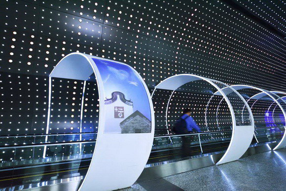 全程突出“云+”的概念,分為“云之‘家’‘夢’‘心’‘城’”四個空間,整體以“云”為設(shè)計主元素,既與“白云機(jī)場”的“云”相呼應(yīng),又寓意飛機(jī)穿越云端,與未來“云時代”對話。白云機(jī)場相關(guān)負(fù)責(zé)人介紹,打造特色“時空隧道”,通過前沿技術(shù)帶來科幻特色體驗(yàn),一方面重在增加地方特色和機(jī)場特色;另一方面提升旅客出行體驗(yàn)。