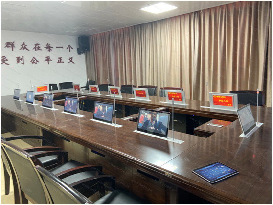 此套無紙化會議系統(tǒng)同時與數(shù)字法院系統(tǒng)平臺融合對接,會議進行時可通過辦案系統(tǒng)內(nèi)的電子卷宗直接同步至無紙化系統(tǒng)平臺了解相關(guān)案情,進一步提高會議審判效率和質(zhì)量。