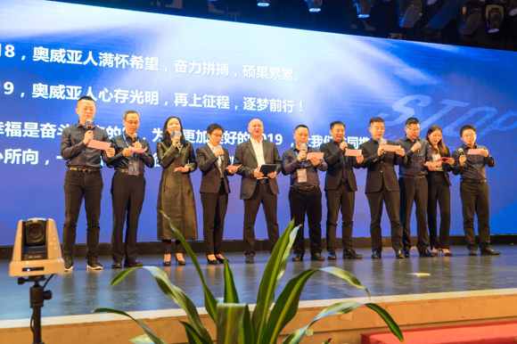 本次大會的主題為“再·征程”,新的一年,奧威亞將揚帆再起航,再戰(zhàn)新征程,開啟新輝煌;勵精圖治、開拓創(chuàng)新,對外合作、對內(nèi)共贏,同心、奮進、再征程,力爭2019年再次實現(xiàn)跨越式發(fā)展,譜寫更加絢爛的華美篇章。