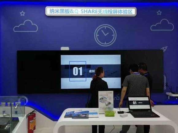 納米黑板結(jié)合粉筆+水寫(xiě)筆觸摸,同時(shí)結(jié)合Q-Share實(shí)現(xiàn)多媒體教學(xué),無(wú)線投屏設(shè)備同時(shí)支持電腦和移動(dòng)終端同時(shí)顯示。