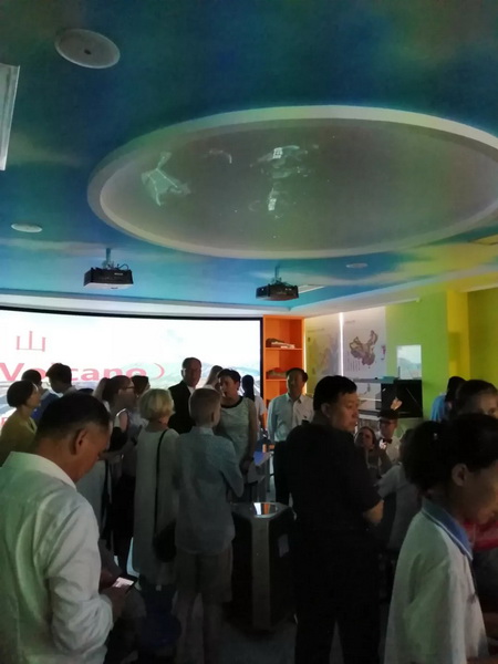代表團對多媒體超半球互動球幕投影演示儀產(chǎn)生了濃厚的興趣。在這個立體半球演示儀上,既可以演示宇宙中的天體運動 (如:太陽系八大行星等),也可以演示地球上的地理知識(如:全球氣壓帶、風(fēng)帶、洋流、地球剖面等)。教師可以根據(jù)教學(xué)需要進行多角度、多方位、多對象的開發(fā)和演示,為提倡師生互動教學(xué)增添新意。