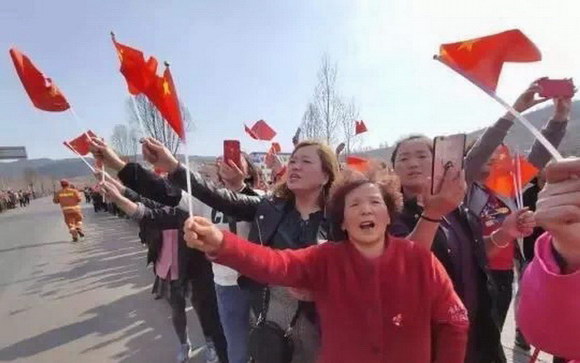 救援結(jié)束后,沁源人民紛紛自發(fā)地走上街頭歡送各界支援力量,感謝的橫幅和五星紅旗的紅色交相輝映,久久不愿散去。
