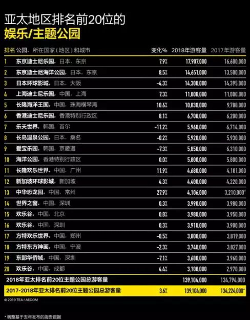 ◎亞太區(qū)排名前20位的主題樂(lè)園