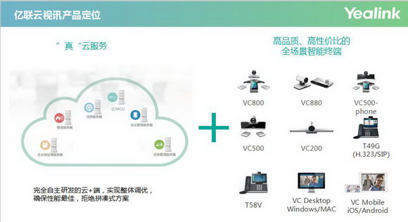 為更好的升級云+端的新型視頻會議運(yùn)作模式,億聯(lián)強(qiáng)推出億聯(lián)云視訊,億聯(lián)云視訊是一個(gè)基于云架構(gòu)的支持多方視頻會議的服務(wù)平臺,集云MCU、注冊、穿透、會議管理、會議控制、設(shè)備管理等服務(wù)模塊于一體,并支持億聯(lián)視頻會議終端、桌面視頻話機(jī)、PC軟終端、移動APP等億聯(lián)全系列視頻會議產(chǎn)品。