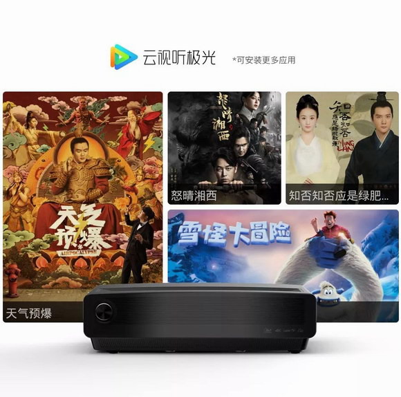 機(jī)器后端貼近墻面就能投射出100英寸大屏,更節(jié)省空間。