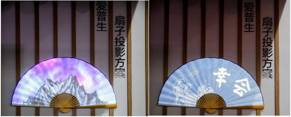方案,同時(shí)鼓勵(lì)用戶參與店面裝飾,DIY定制更多個(gè)性創(chuàng)意的投影。不論是熱情奔放的活力藝術(shù)展,溫馨舒適的親子兒童樂(lè)園,還是清冷內(nèi)斂的日本小酒館,都可以在LightScene投影燈下完成相應(yīng)的店面氛圍轉(zhuǎn)換。借助文化道具,愛普生在古色古香的中國(guó)傳統(tǒng)折扇中呈現(xiàn)光影變換,讓表面曲折立體的折扇顯得別有韻味,可以輕松融入到不同的裝修風(fēng)格中,讓整體布置余味悠長(zhǎng)。