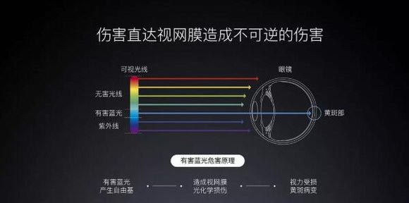 波長處于400nm-460nm之間具有相對較高能量的短波藍光,能夠穿透晶狀體直達視網(wǎng)膜,引起視網(wǎng)膜色素上皮細胞的萎縮甚至死亡。光敏感細胞的死亡將會導致視力下降甚至完全喪失,這種損壞是不可逆的。但藍光并不都是有害藍光,波長處于460-500納米之間的長波藍光具有調(diào)整生物節(jié)律的作用,睡眠、情緒、記憶力等都與之相關(guān),對人體反而是有益的。
