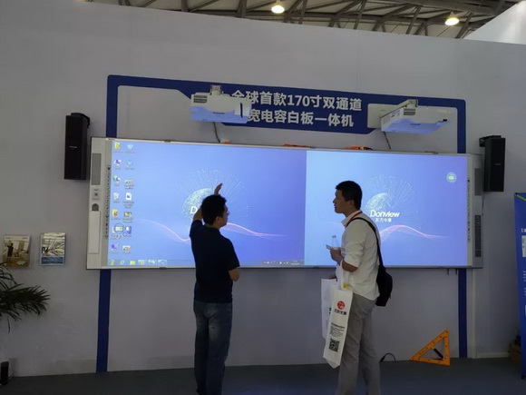 此次展會東方中原帶來了全球首款170寸雙通道超寬電容白板一體機,它目前是全球首款最大的雙通道電容白板一體機解決方案。