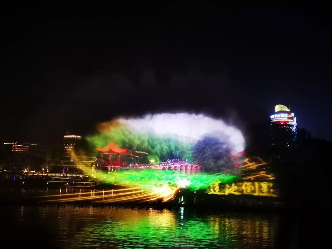 通過高亮度投影顯示打造的水幕秀場,用來展示美麗的自然風景、人文藝術、歷史變遷等等,超大的顯示畫面,加上炫麗的色彩,照亮整個南充北湖公園。