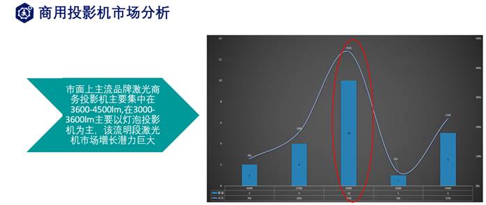 東方中原自有品牌索諾克上市以來,抓住激光新光源的技術(shù)革新啟點,掀起投影及顯示技術(shù)行業(yè)浪潮,翟總提到,市面上主流品牌激光商務(wù)投影機主要集中在3600-4500lm,在3000-3600lm主要以燈泡投影機為主,該流明段激光機市場增長潛力巨大