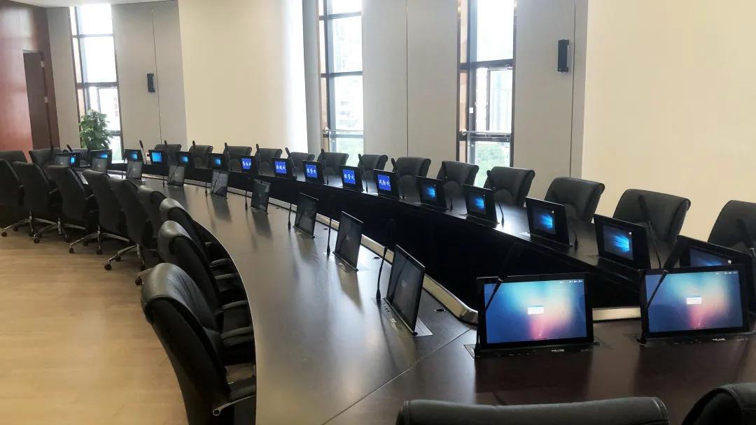 在某銀行項目中的電腦會議室采用無紙化會議模式。通過MICS云,能夠?qū)⒖梢暬畔⑸掀林習(xí)h桌上放置的液晶屏,結(jié)合無紙化系統(tǒng)的相關(guān)應(yīng)用功能,大大簡化開會流程,無需多余各種設(shè)備,強強聯(lián)合,充分滿足會議中各項需求。