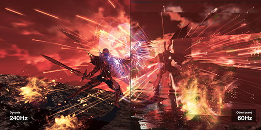 這款機(jī)器最大的亮點(diǎn)無疑是高達(dá)240Hz的刷新率與超低的輸入延遲。240Hz刷新率使屏幕每秒能夠更新240次新圖像。刷新率越高,顯示器每秒可以顯示的幀數(shù)就越多,屏幕上的畫面也就會(huì)越流暢。目前普通的顯示器刷新率都是60Hz,電競顯示器的刷新率一般都在144Hz左右,而奧圖碼游戲投影機(jī)UHD506的刷新率則是240Hz,對比之下高下立判!