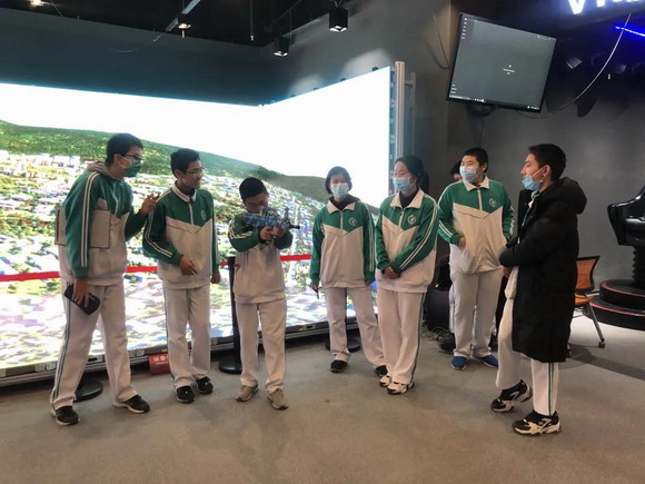 儀式后,在利亞德集團(tuán)工作人員帶領(lǐng)下,后備人才基地!锥紟煼洞髮W(xué)附屬中學(xué)的30余名師生參觀了利亞德展廳,現(xiàn)場還結(jié)合VR工業(yè)仿真等進(jìn)行了科技與教育融合的互動體驗(yàn)。
