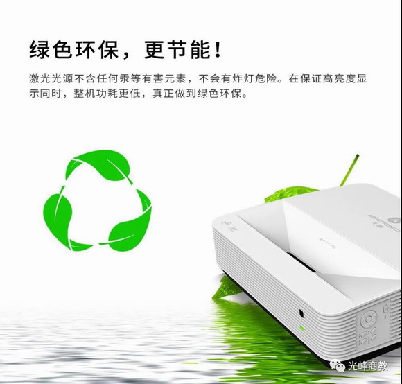 此次東師附中教室里安裝的光峰高清超短焦投影機(jī),亮度高達(dá)5300流明,1080P的分辨率,一經(jīng)推出收獲悉數(shù)好評(píng),主要得益于其應(yīng)用全新ALPD®激光顯示技術(shù),具備了高亮度、優(yōu)畫(huà)質(zhì)、長(zhǎng)壽命、低成本、環(huán)保節(jié)能的優(yōu)點(diǎn),解決了傳統(tǒng)教室使用投影機(jī)教學(xué)的痛點(diǎn)、難點(diǎn)。