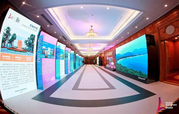 會場外,一條特別設置的“招商項目展示走廊”尤為引人注目。展示走廊以洲明UGN系列LED大屏為顯示載體,以高清的畫面、細膩的色彩,向參會嘉賓全面展示深圳發(fā)展成績與美好前景。