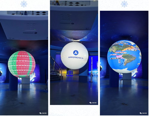科技館的航天航空館中藏著浩瀚的宇宙,最亮眼的當(dāng)屬采用4臺(tái)光峰長(zhǎng)焦高亮投影機(jī)融合打造的直徑1.5米的“地球”,整個(gè)畫(huà)面無(wú)縫融合,完美的呈現(xiàn)地球的輪廓。