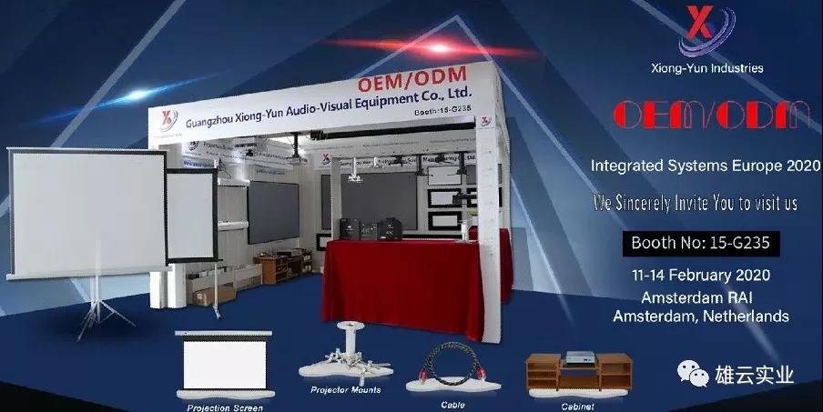 雄云實業(yè)攜旗下廣州市雄云視聽設(shè)備有限公司和廣州市雄瑞投影幕制造有限公司參加荷蘭阿姆斯特丹視聽及系統(tǒng)集成展會(ISE)。雄云實業(yè)將攜創(chuàng)新產(chǎn)品隆重亮相,為全球客戶帶來眾多高端的影音視聽器材產(chǎn)品!