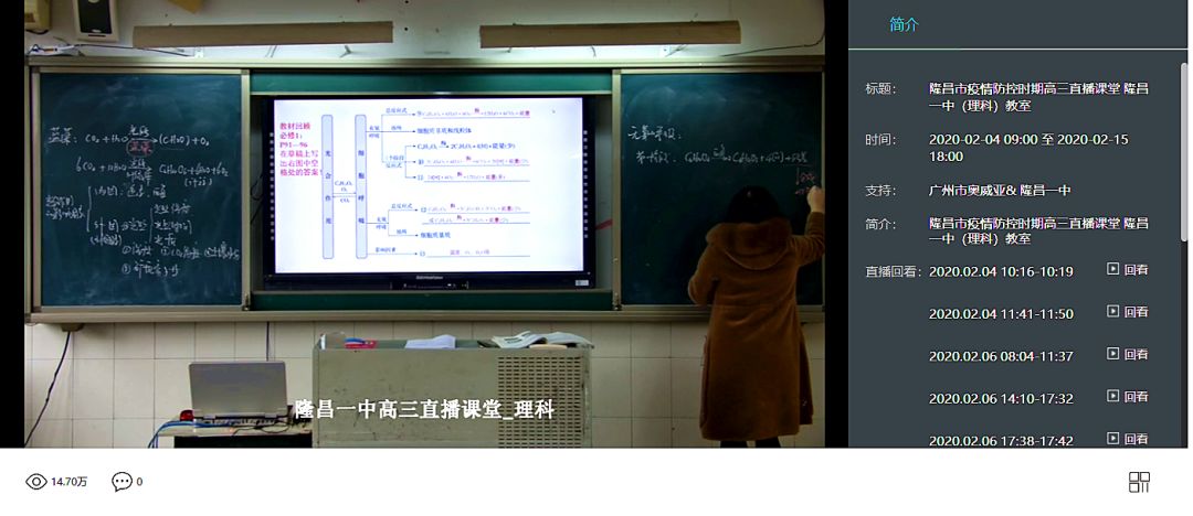 2月1日開始,隆昌市教體局在奧威亞錄播教室支撐下,開展全市高三文理科和初三在線課程教學(xué),目前已覆蓋全市多所學(xué)校,受益學(xué)生超8000多人,開通在線課程800多節(jié),截至3月1日,直播點(diǎn)擊量超3000多萬人次,最高觀看人數(shù)達(dá)到1萬多人。