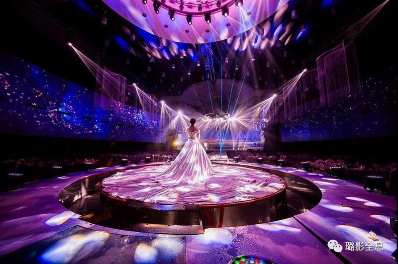 璐影全息打造的完美6D全息婚禮將270度裸眼3D、T臺互動、舞美道具、婚紗投影、燈光、音響、聲光電等科技元素完美整合,在相互配合的基礎上,通過觸控選擇模式,呈現(xiàn)出沉浸式效果視覺盛宴,原始森林、海底世界、浪漫花海、星空閃爍等實現(xiàn)各個場景的瞬間切換,置身其中感受沉浸式的全感官體驗。