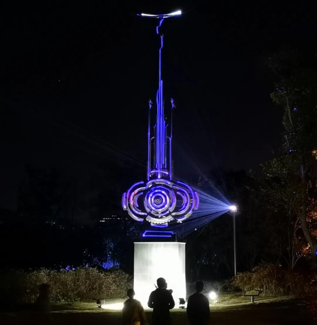在每一件雕塑作品獨(dú)特的造型空間上,輔以光影、動(dòng)畫、互動(dòng)裝置等藝術(shù)科技手法,動(dòng)態(tài)演繹作品本身的藝術(shù)思想及外延的文化意象,賦予雕塑作品夜幕下的新生命,進(jìn)一步拉近雕塑藝術(shù)與游人之間的思想交流。鏈接當(dāng)?shù)靥厣幕、人文情感與藝術(shù)科技之間的樞紐,喚起共鳴情感。