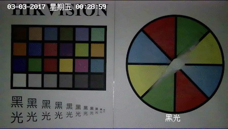 為更好地展示黑光效果,我們準備了黑箱環(huán)境來做對比,讓監(jiān)控設備在黑暗環(huán)境下,辨別物體的形狀、顏色,甚至是超小型號的字體。