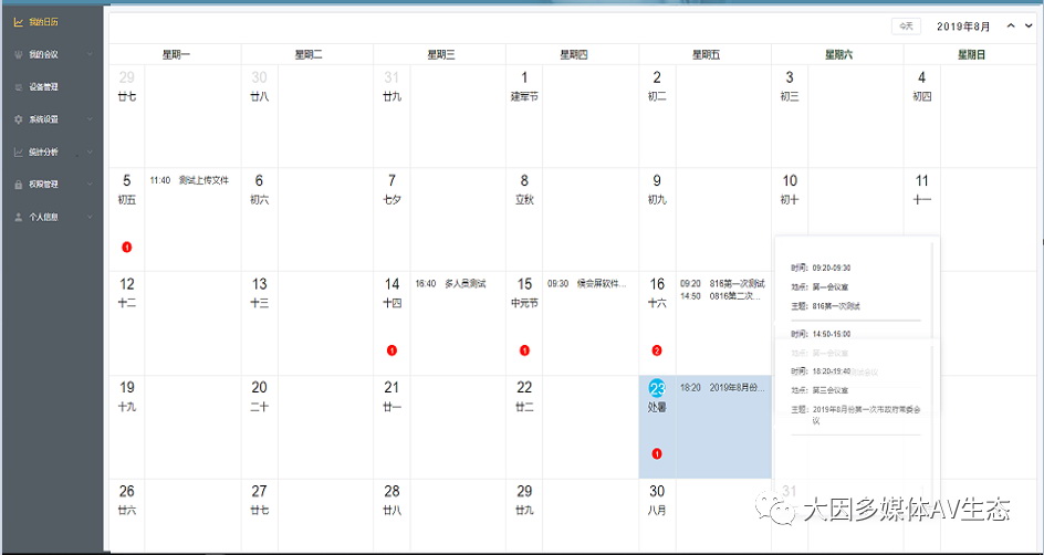 系統(tǒng)支持用戶全員使用,具有個(gè)人會(huì)議日歷導(dǎo)航、個(gè)人信息查看與編輯,以及按其系統(tǒng)角色權(quán)限授權(quán)可用的其他功能。