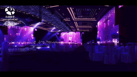 5D全息宴會廳:結合3D環(huán)幕、婚紗投影、T臺互動、全息舞臺、裸眼3D、燈光、包圍式音響等科技元素,實現(xiàn)空間與藝術科技的統(tǒng)一性,浪漫花海、魔幻森林、絢麗極光、唯美星空、海底世界等場景搭配婚禮造景,真實與虛幻完美融合。