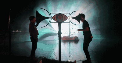這個裝置由設計師賽及·博斯泰克(Thijs Biersteker)設計。帶有迷幻星云效果并且在中間有個眼睛樣東西的巨型裝置,將傳感器藏于周圍環(huán)境中;同時,視頻輸入由音頻和視頻傳感器的現(xiàn)場直播完成。