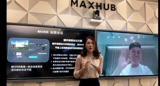 辜佳蓉分享了MAXHUB的產(chǎn)品優(yōu)勢:MAXHUB可以結(jié)合客戶原有視頻會議硬終端實現(xiàn)單屏雙流、雙屏雙流等應(yīng)用場景,客戶的電腦內(nèi)容可以無線投屏至?xí)h平板、平板操作共享桌面;異地開會也能在屏幕同步觀看文件,結(jié)合觸摸功能,可與遠端進行互動,避免了傳統(tǒng)開會只能看不能摸的尷尬。