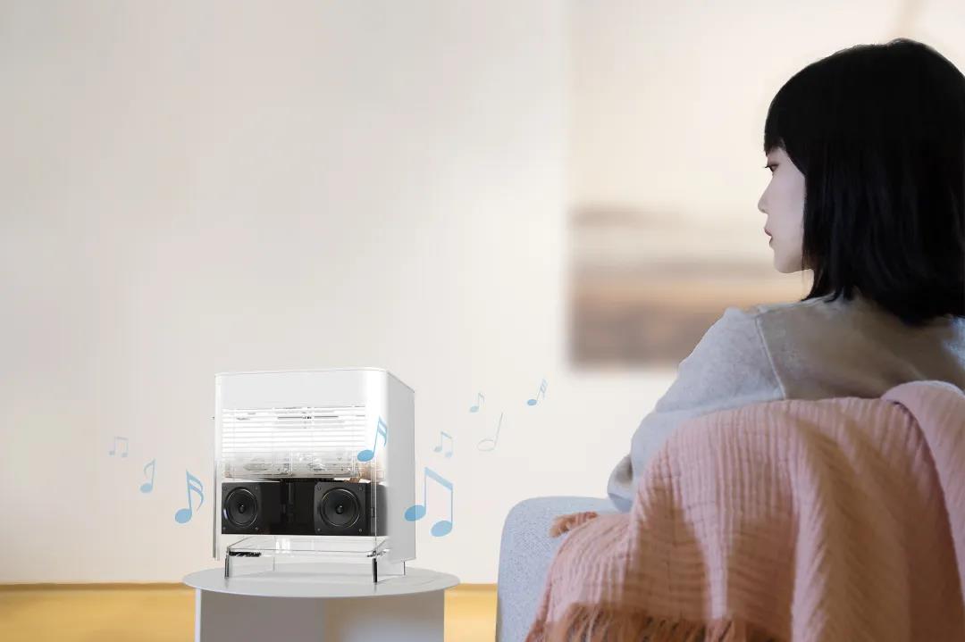 當(dāng)夜晚來臨,GK100的底座散發(fā)出暖黃光暈,家居空間立刻籠罩著恬靜溫暖的氛圍。