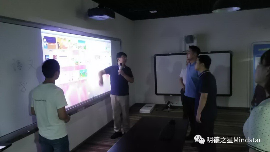 大廳參觀完后,副總經(jīng)理孔慶峰邀請各位領(lǐng)導(dǎo)前往公司展廳觀看公司的產(chǎn)品,在展示廳內(nèi),副總經(jīng)理孔慶峰就教育投影儀的相關(guān)使用功能,做了相關(guān)的講解、演示,相對于傳統(tǒng)的投影儀,本設(shè)備的主要優(yōu)點(diǎn)在于具有超高的亮度、無塵寫字等。讓老師教學(xué)期間遠(yuǎn)離粉筆危害,同時(shí)設(shè)備自帶有相關(guān)專業(yè)的教學(xué)軟件,老師可以隨時(shí)隨地備課、教學(xué)、與學(xué)生和家長互動(dòng)等功能,很好的滿足了學(xué)校的教學(xué)需求。