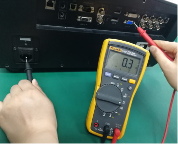 2.測量投影機(jī)供電接口“地線”腳與信號端口(如VGA/HDMI/DVI)外殼之間的電阻,正常值一般為幾歐姆;