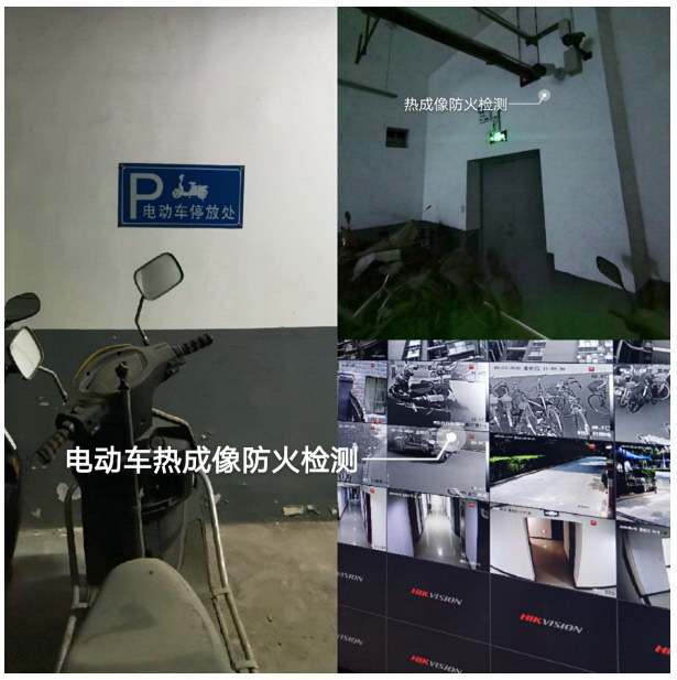 非機(jī)動(dòng)車(chē)庫(kù)加裝高清攝像機(jī)及熱成像防火檢測(cè)攝像機(jī),解決了非機(jī)動(dòng)車(chē)庫(kù)安全隱患,同時(shí)提高了物業(yè)人員管理效率,原有的物業(yè)定時(shí)巡邏人員可通過(guò)監(jiān)控室即可看到非機(jī)動(dòng)車(chē)庫(kù)情況,并可智能進(jìn)行溫度火點(diǎn)檢測(cè)。