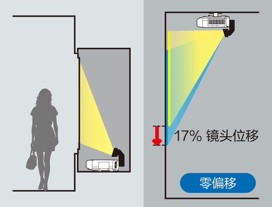 同時(shí),愛普生采用零偏移超短焦鏡頭,這一鏡頭的使用讓投影機(jī)即使在極為有限的空間內(nèi)也能安裝應(yīng)用,并投出大尺寸畫面,充分利用空間,呈現(xiàn)出更為出色的視覺效果。
