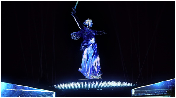 Dreamlaser聯(lián)合創(chuàng)始人 Denis Chuchko表示:“我們已經(jīng)為‘偉大的勝利曙光’裝置準備好幾年,但今年是特殊的一年。首先,我們現(xiàn)有的技術(shù)能力只需使用非常少的投影機就能點亮如此規(guī)模的雕像。RGB激光技術(shù)的色彩傳輸質(zhì)量、鮮艷程度和明暗度是讓我們與眾不同的根本原因。從電視畫面的角度來看,這同樣重要,因為成千上萬名觀眾將觀看慶;顒拥默F(xiàn)場直播和錄像。在今年的直播中,我們還引入了AR組件。我們在馬馬耶夫崗高地另外安裝26盞聚光燈,并使用數(shù)以千計的LED光柱將高地覆蓋成一片‘燃燒的田野’。”